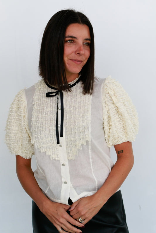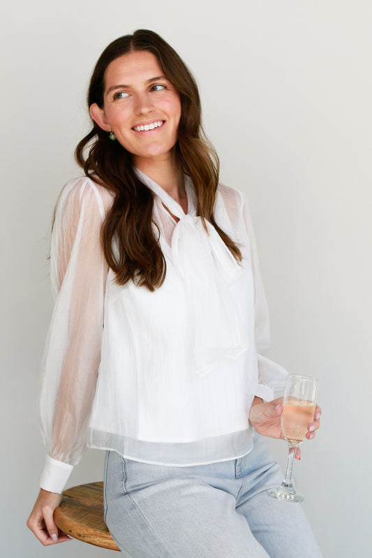Organza White Bow Blouse