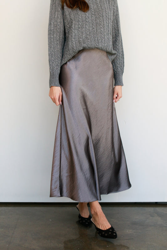 Pewter Satin Midi Skirt