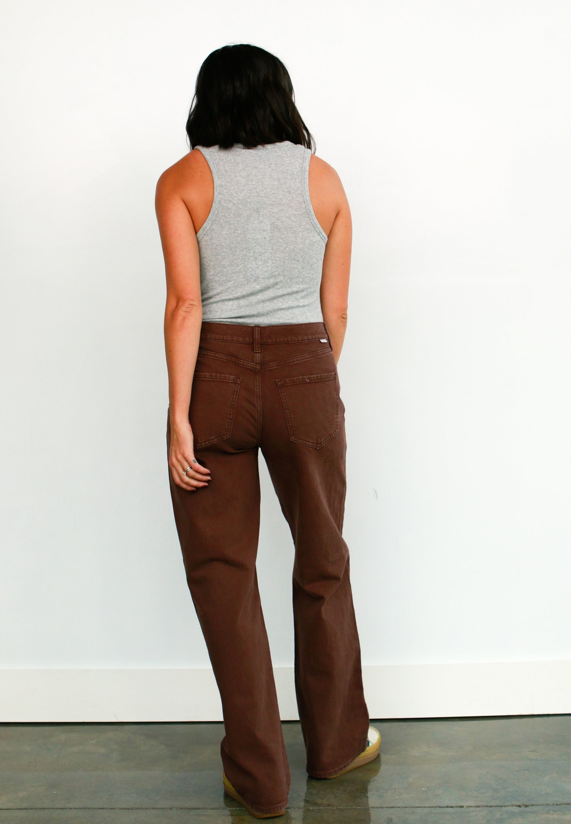 Experience timeless style with the 90's Slouch Brown Jean, crafted in a rich chocolate brown hue. Featuring a mid to low rise and a comfortable fit, these jeans offer both elegance and ease. Perfectly balancing vintage inspiration with modern sophistication, they provide a flattering silhouette for everyday wear while ensuring all-day comfort.