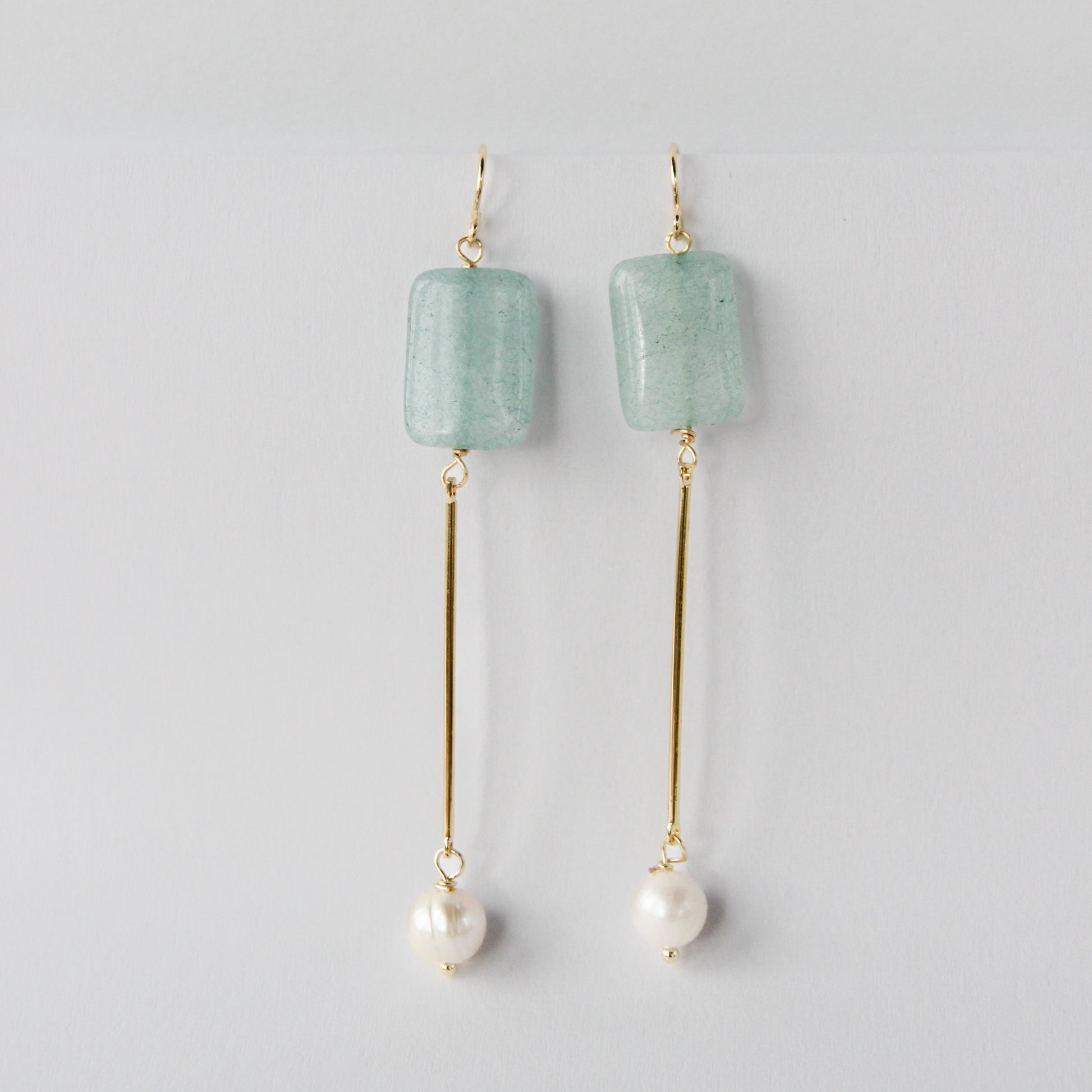 Make a refined statement with the Olive Statement Earrings, where natural amazonite rectangles catch the light with serene blue-green hues. Each piece features an elegant pearl accent that adds luminous contrast, all suspended from delicate French hooks for secure, comfortable wear. These earrings blend organic beauty with polished sophistication, offering a distinctive look that complements both minimalist and eclectic styles.