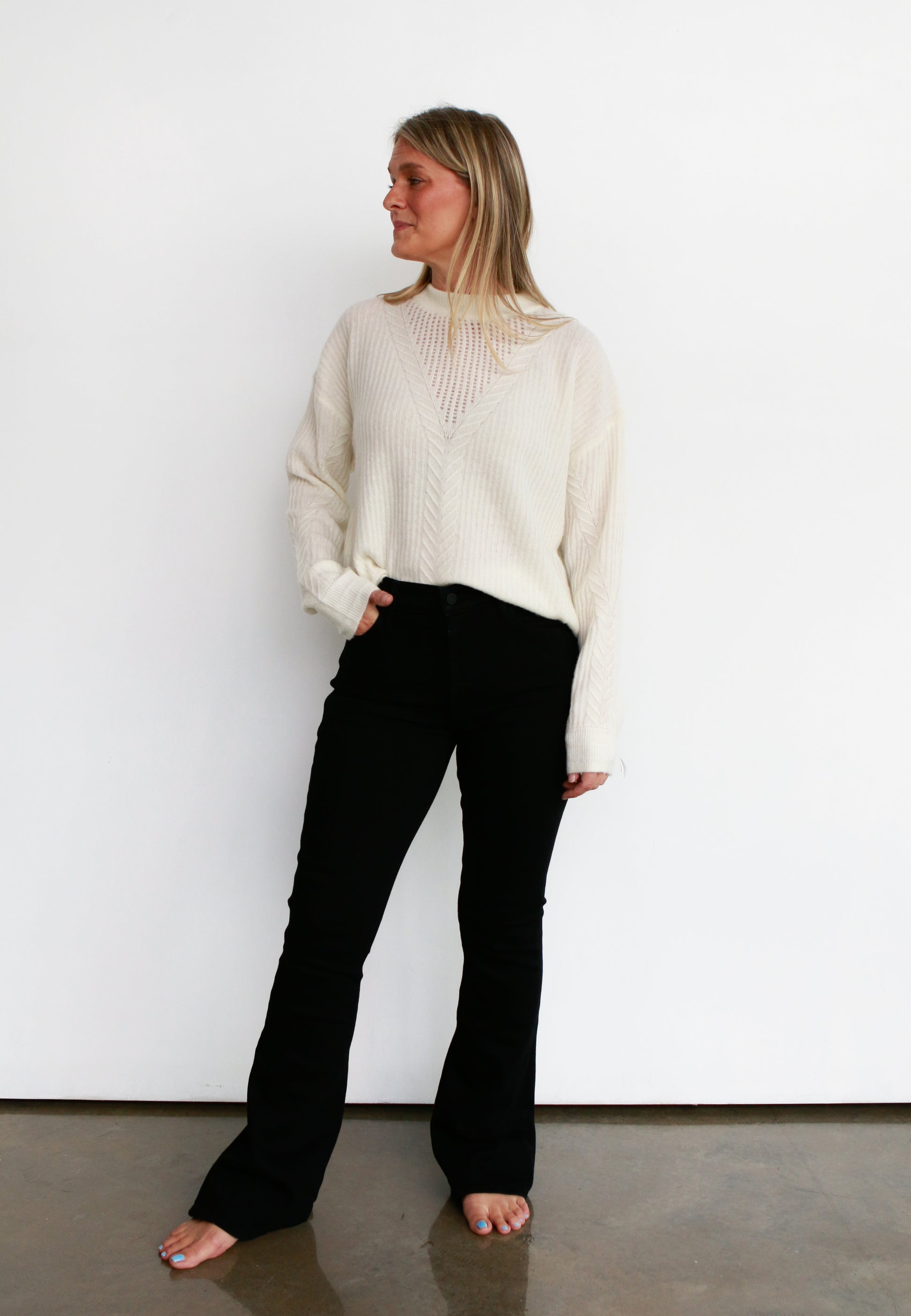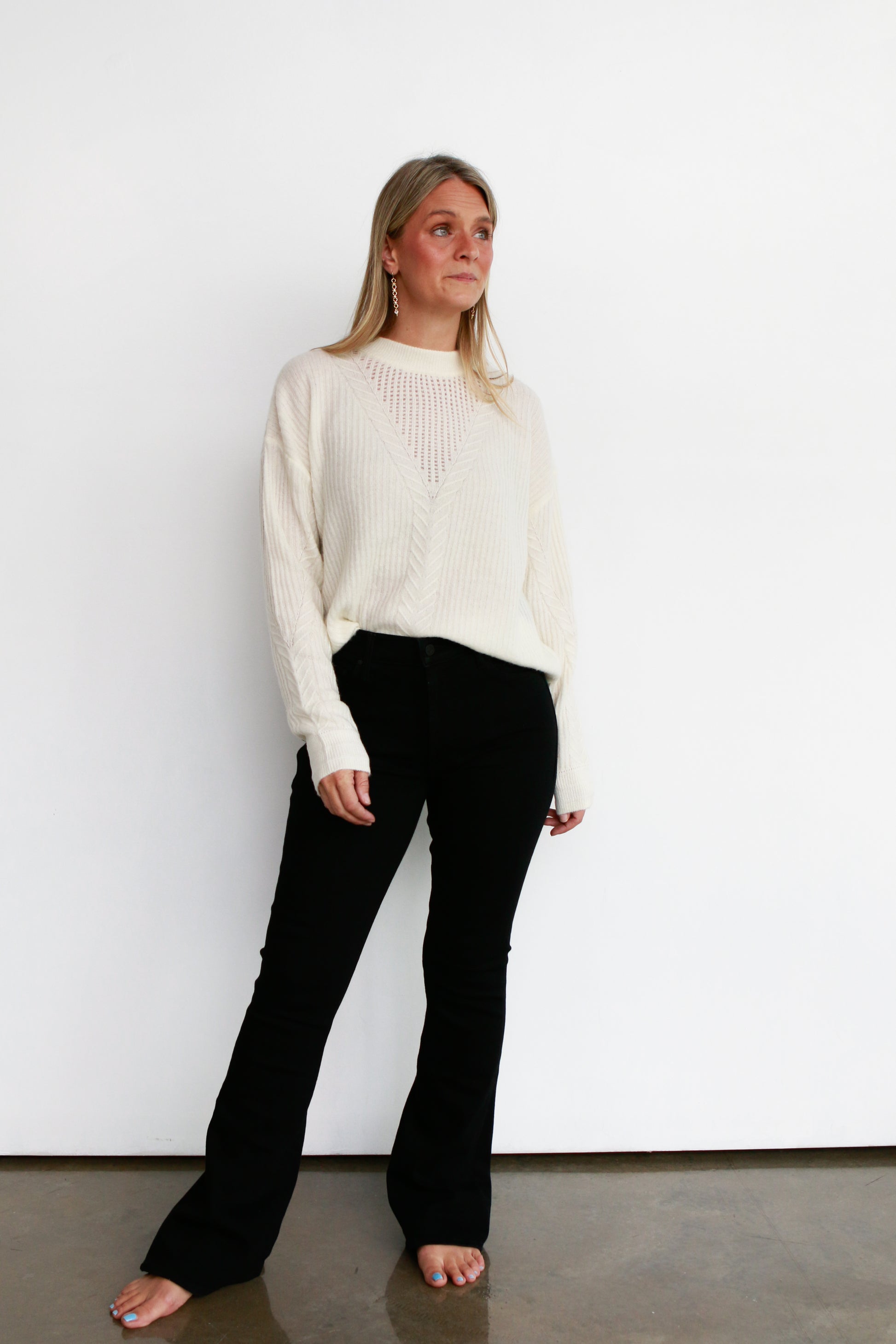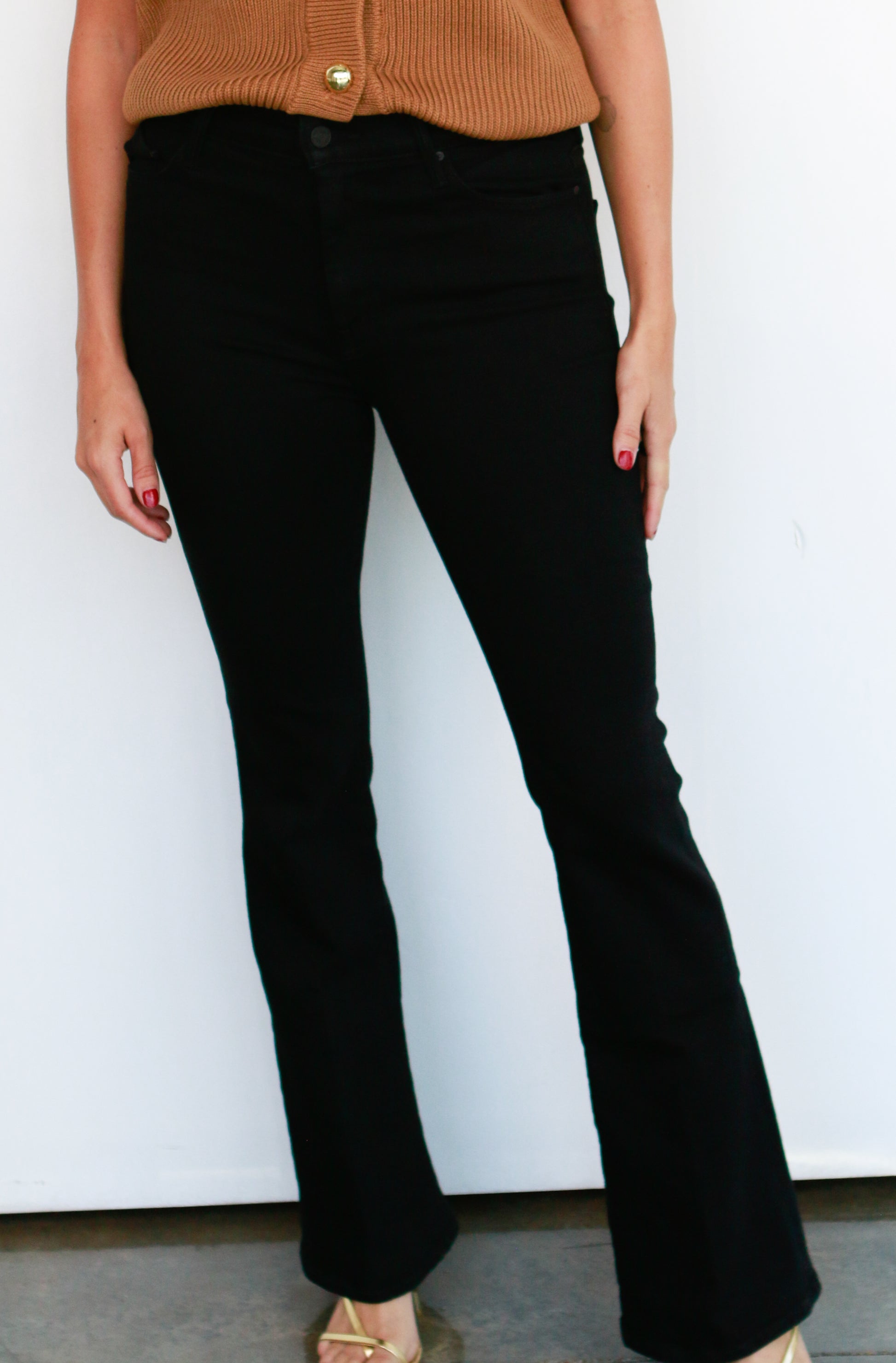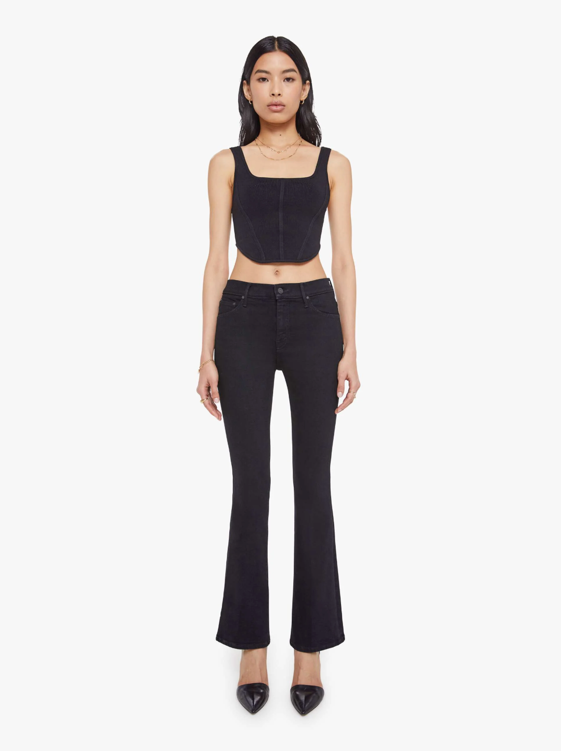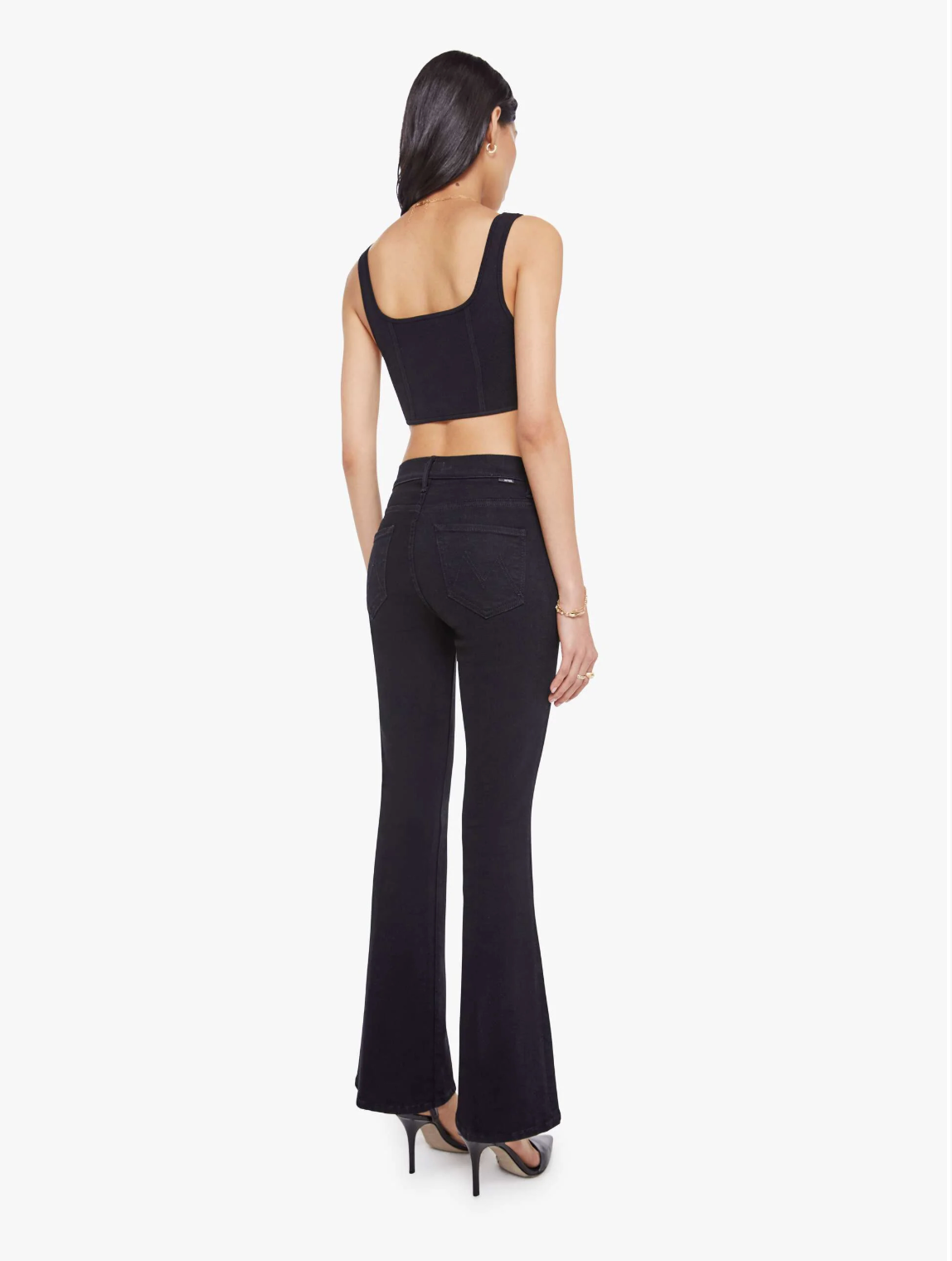 Sweet dreams... This cult-favorite flare jean has a mid rise with a 31-inch inseam and a clean hem. Cut from denim with a touch of stretch, Nighty Night is a dark black with tonal hardware. This style will become one of your new favorites from MOTHER DENIM.