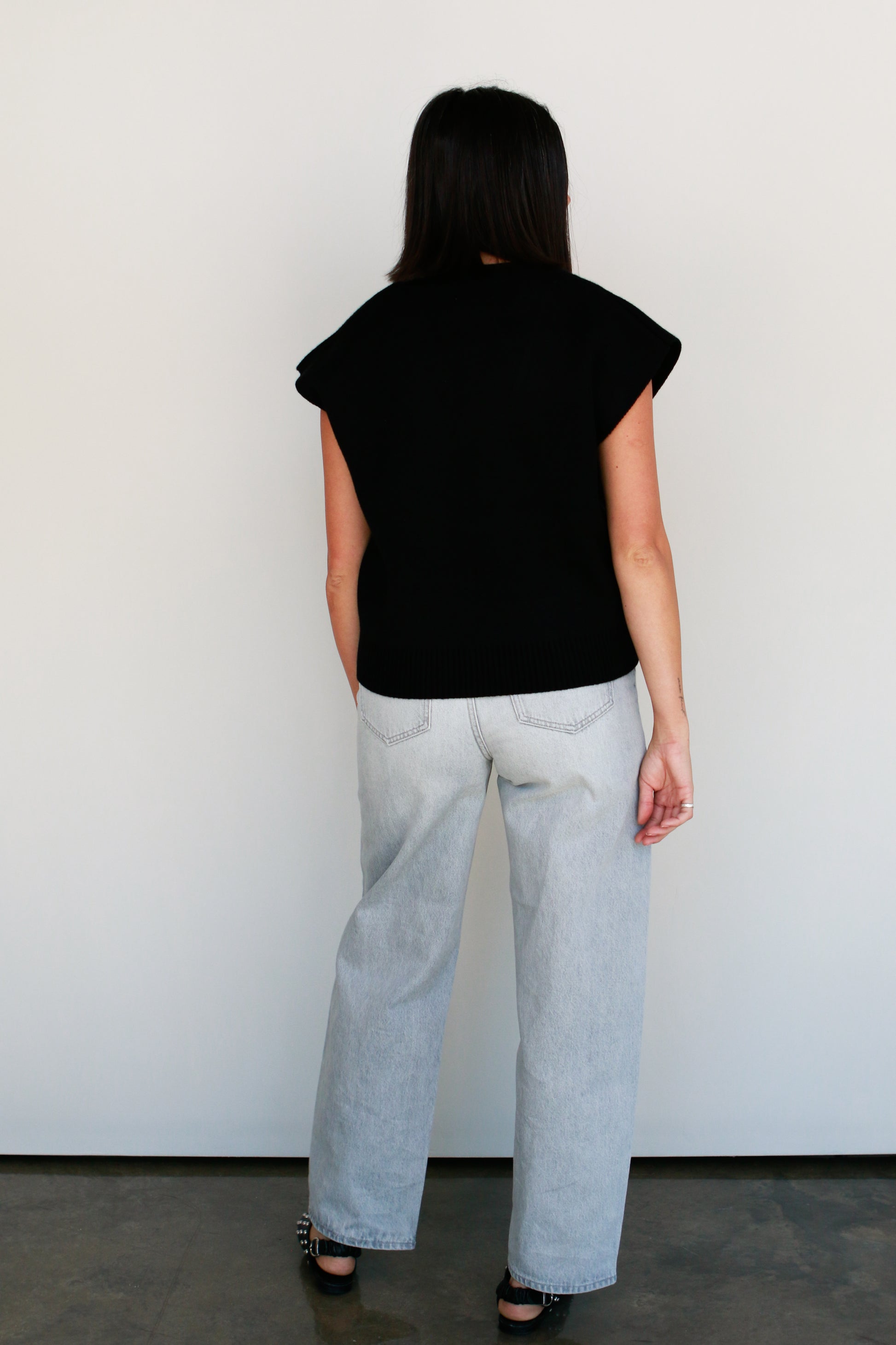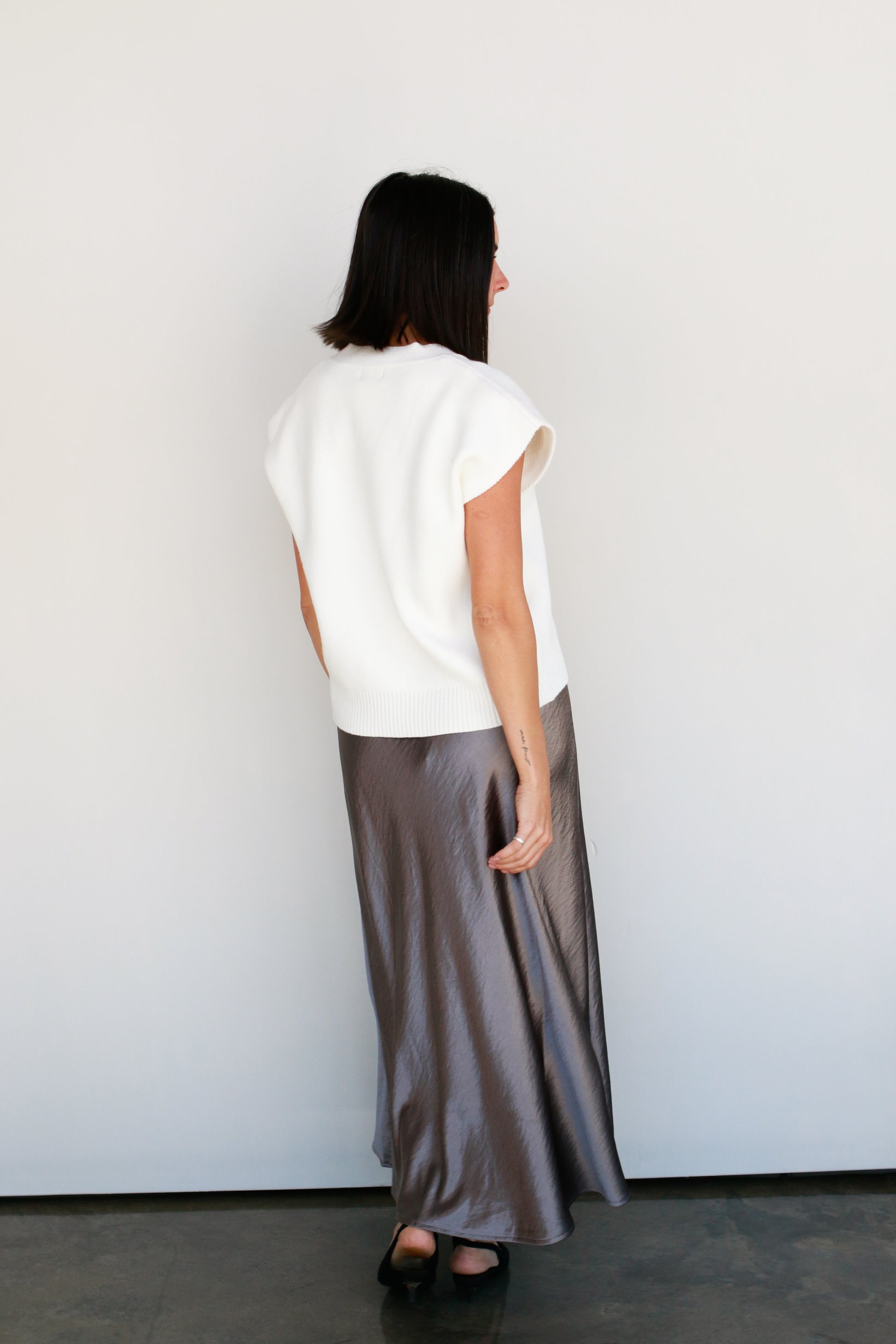 Experience refined comfort with this soft, stretchy knit sweater vest featuring a thicker weave for added warmth and texture. Designed with a flattering v-neck and elegant cap sleeves, it effortlessly complements any outfit. Available in timeless off white and true black, this versatile piece enhances your wardrobe with understated sophistication.
