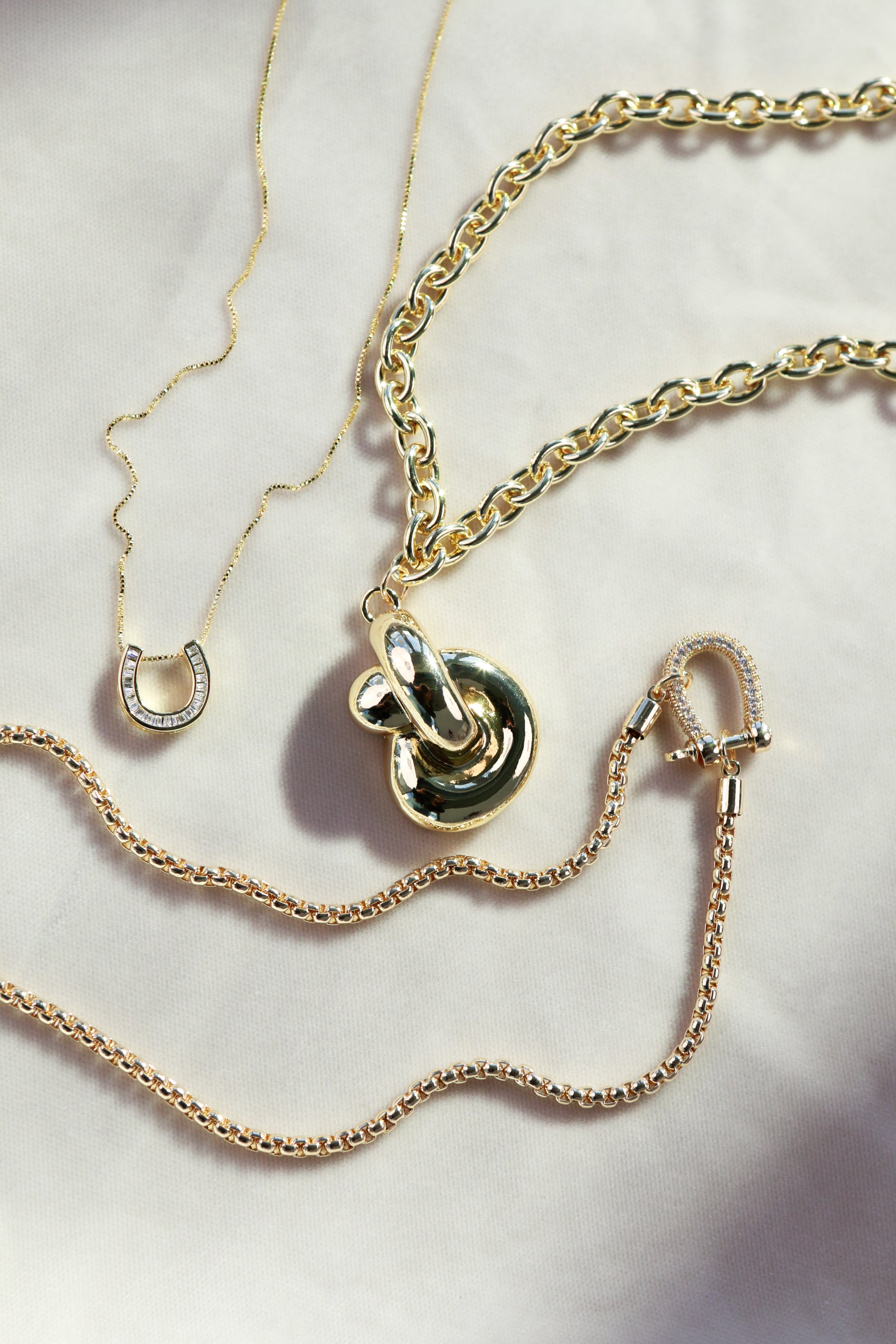Elevate your everyday elegance with this refined Pave Crystal Horsebit Necklace. Featuring a substantial chain crafted for durability and visual impact, this piece showcases a stunning pave crystal horsebit pendant that catches the light beautifully. The adjustable lobster clasp ensures a secure, customizable fit for any occasion. A timeless accessory that seamlessly transitions from day to evening, adding a touch of polished sophistication to any ensemble.