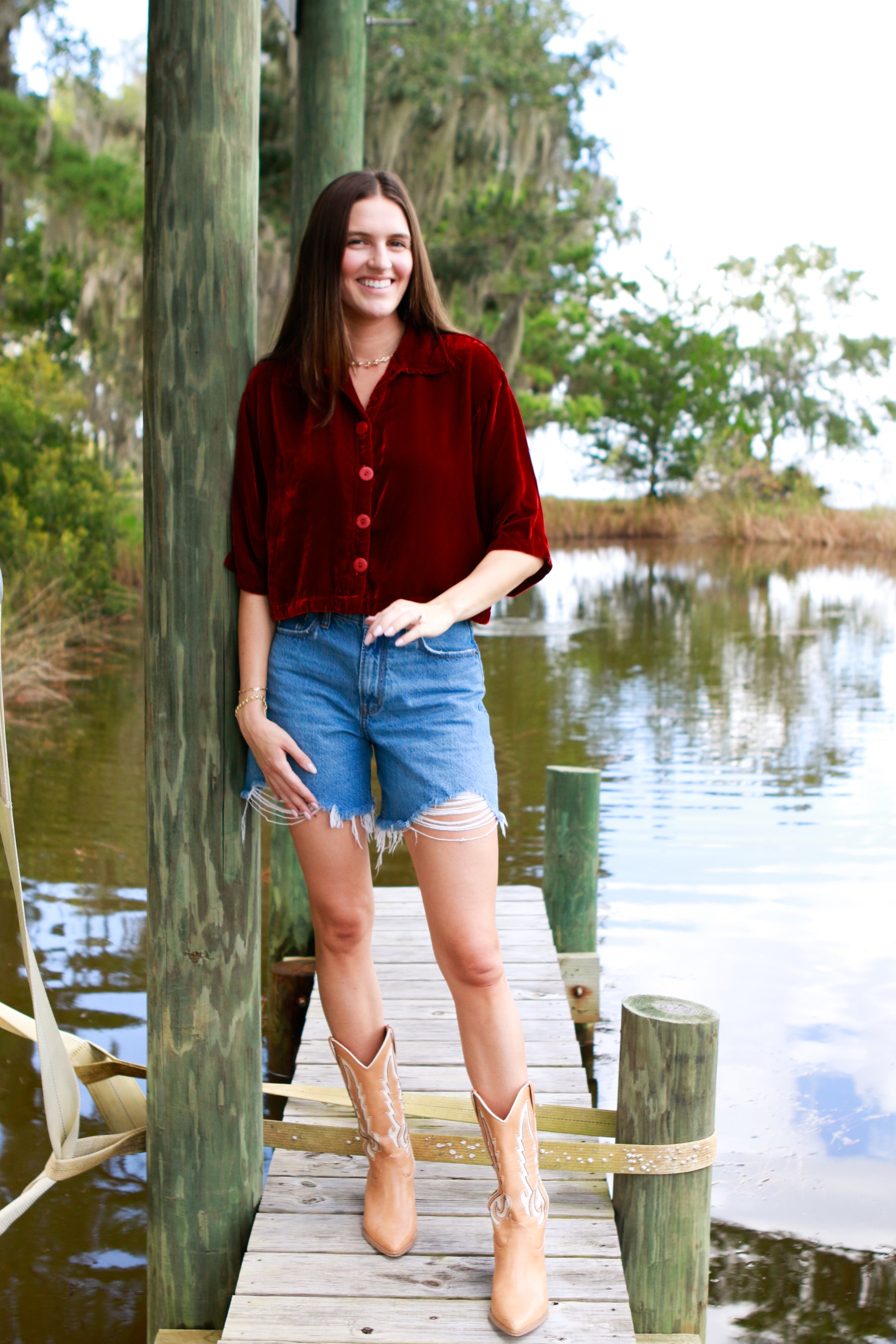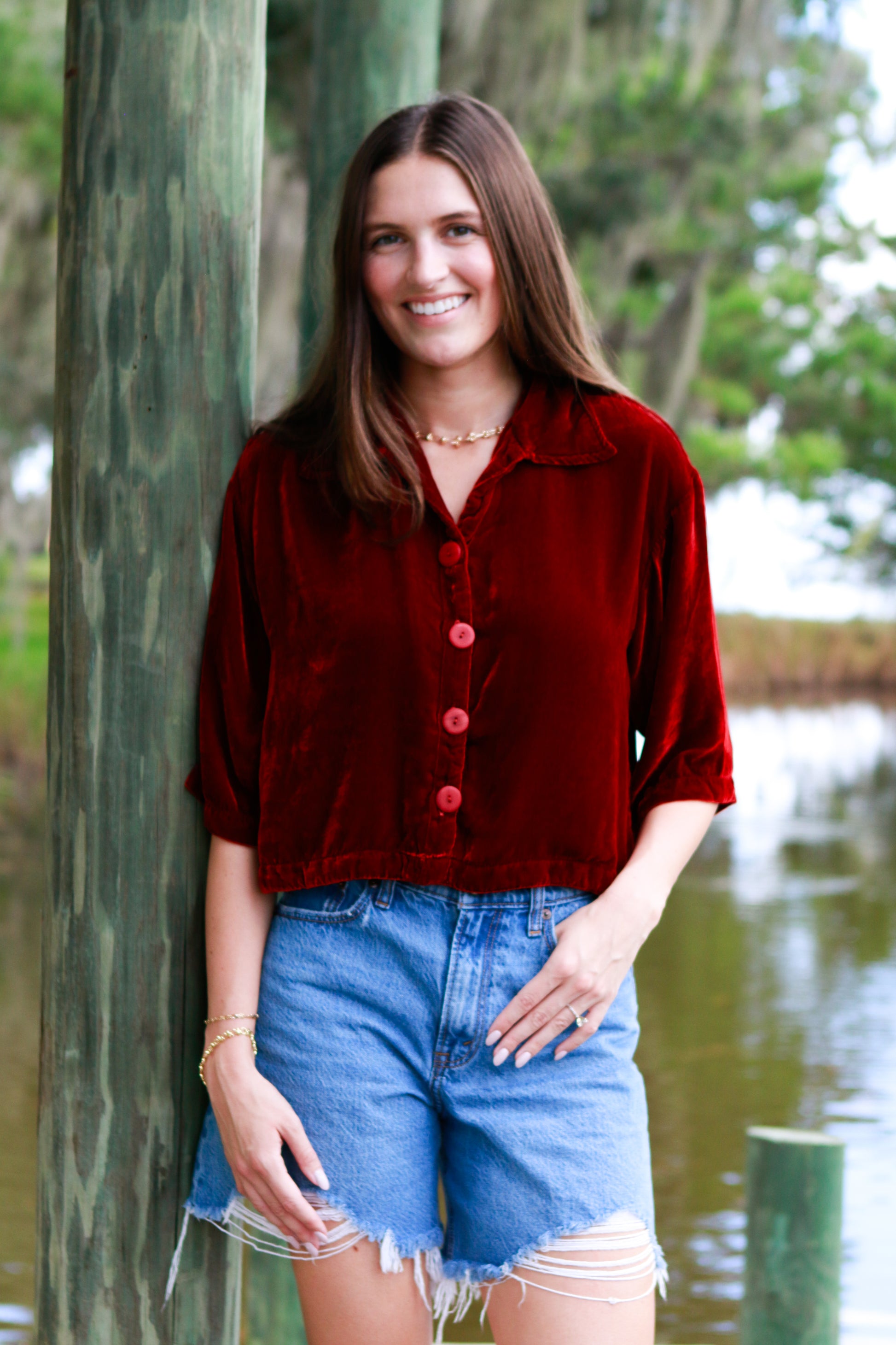 The Parker Jacket features a refined split collar and 3/4 sleeves, combining comfort with elegant style. Crafted from a silk blend, its burnt orange hue and unique fabric give the jacket a luxurious velvet-like appearance, making it perfect for sophisticated occasions. The button-up design adds versatility and a polished finish to your wardrobe.